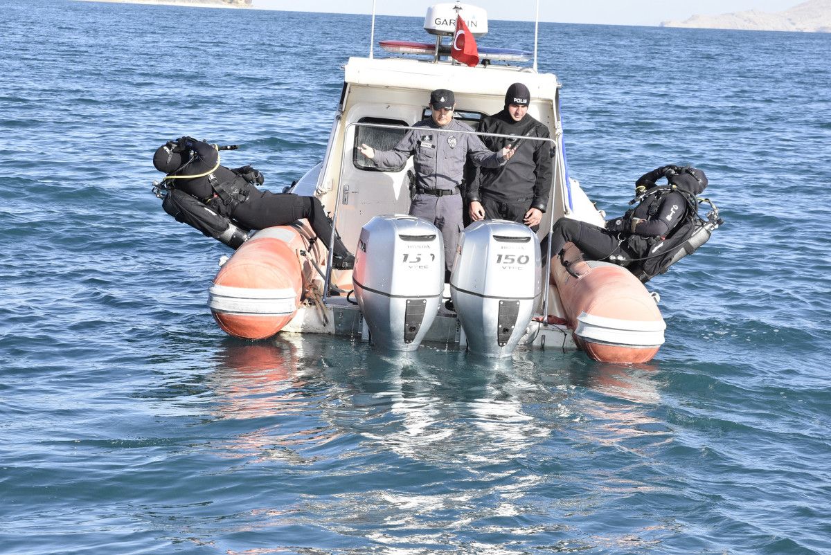 - Yerli kontrol botlarıyla donatılan deniz polisi, gölde devriye görevleri yaparken eğitim dalışlarıyla da hazırlıklı kalıyor.