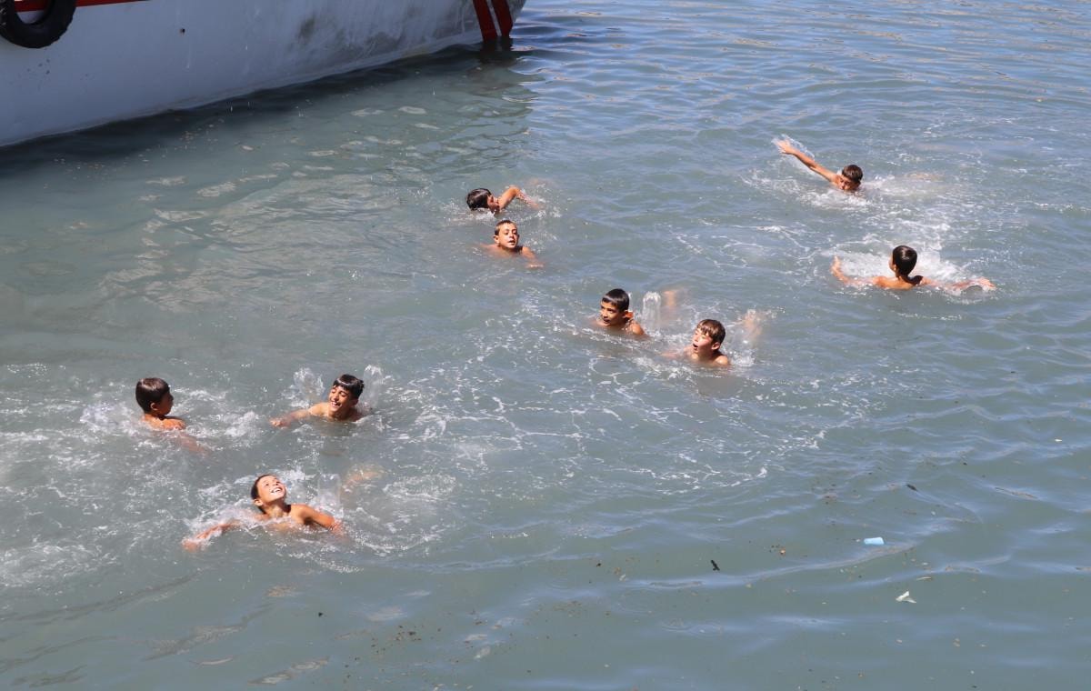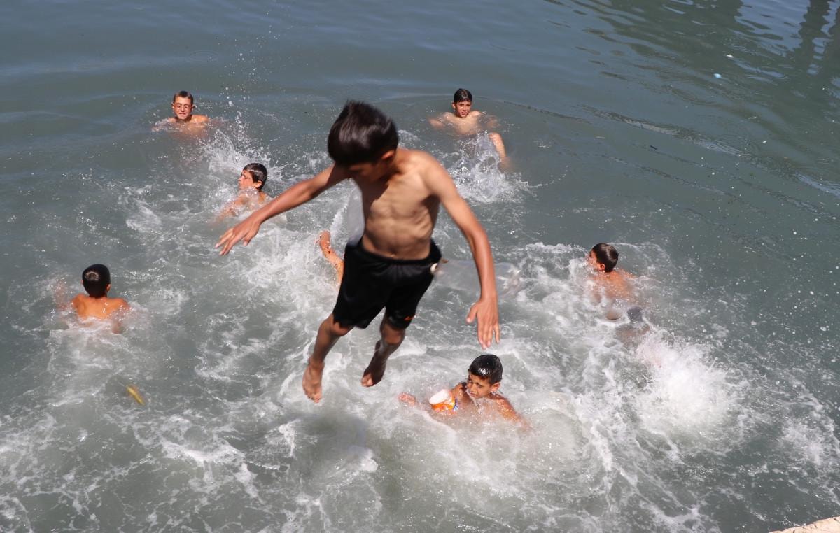 Van Gölü kıyısındaki Tuşba ilçesine bağlı Yaylıyaka Mahallesi'nde yaşayan çocuklar, yaz aylarında Van Gölü'ne girerek yüzüyor.