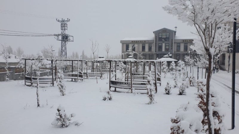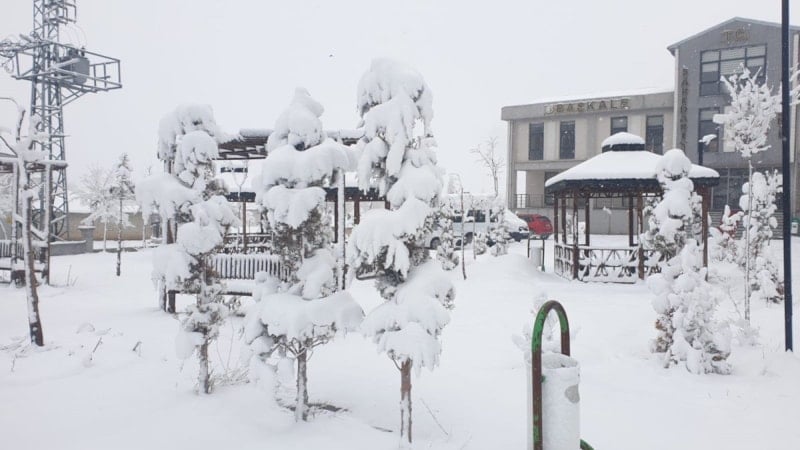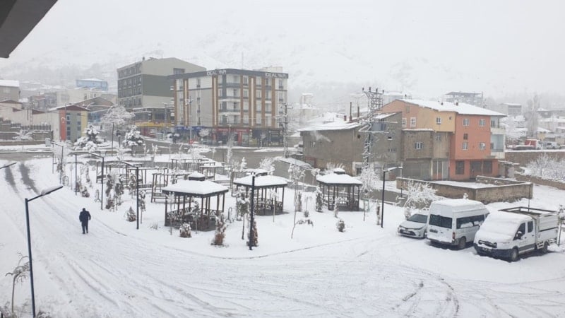Yaklaşık 2 bin 350 rakımlı Başkale ilçe merkezindeki kar kalınlığı 15 santimetreyi ulaştı.
