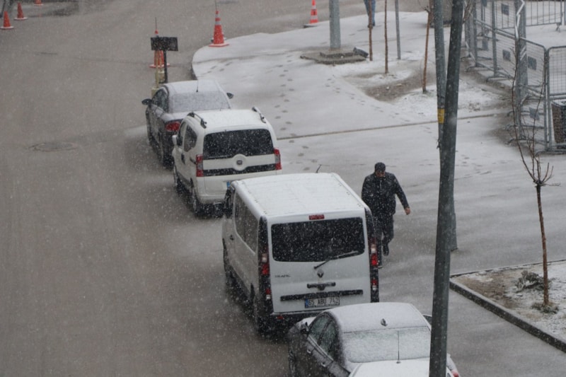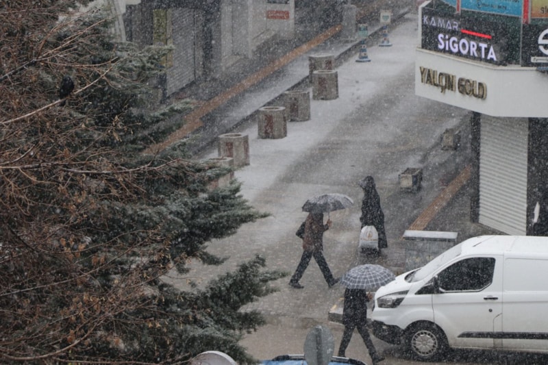 Van merkezde gece etkili olan yağmur, sabah saatlerinde yerini kar yağışına bıraktı.