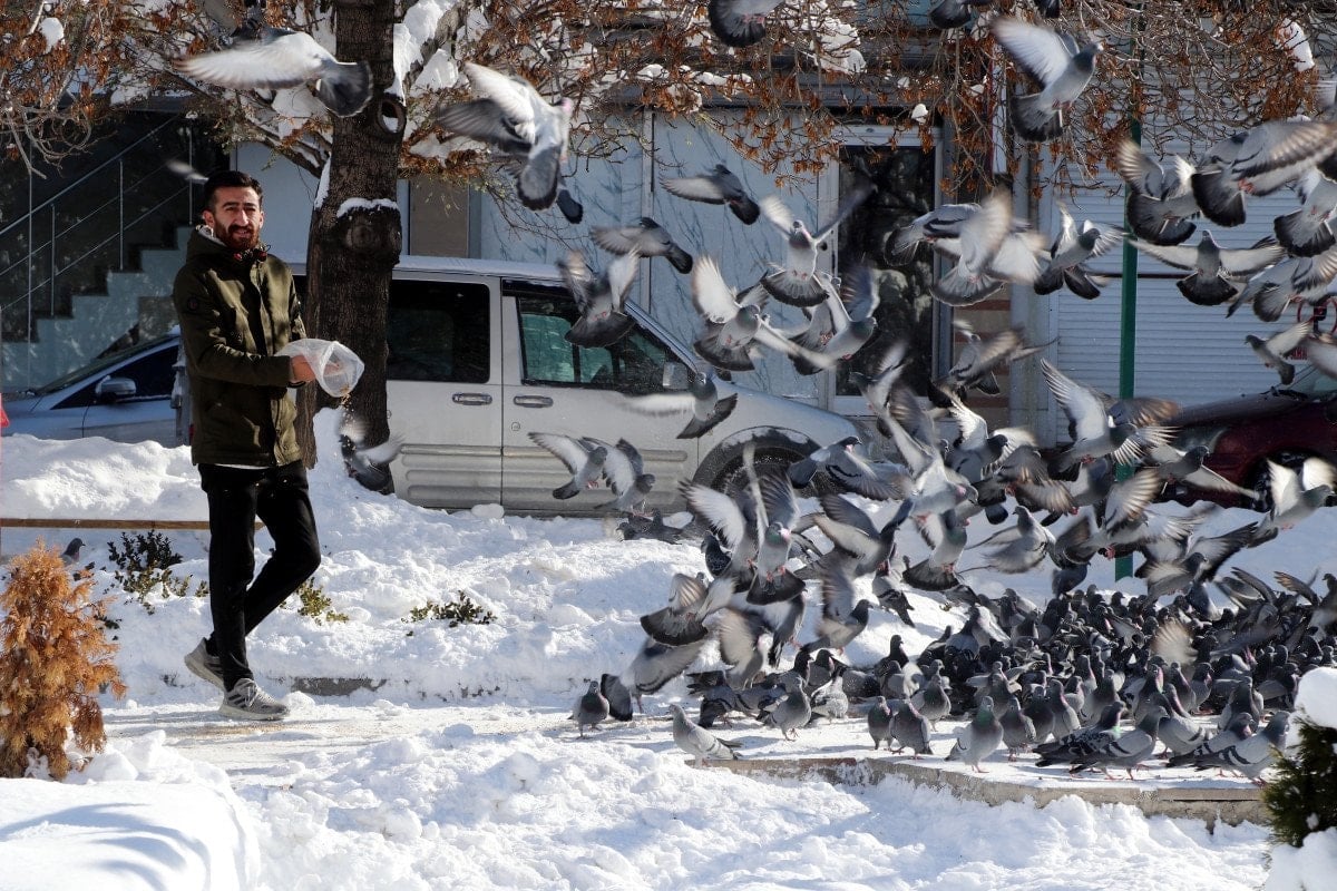 - İzci ve Yusuf Duman, kış aylarında güvercinlerin yiyecek bulmakta zorlandığını belirterek yardım çağrısında bulunuyor.