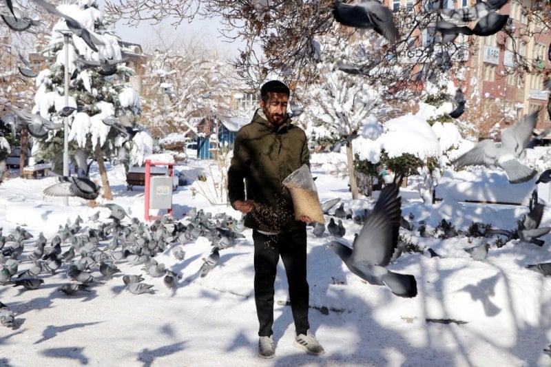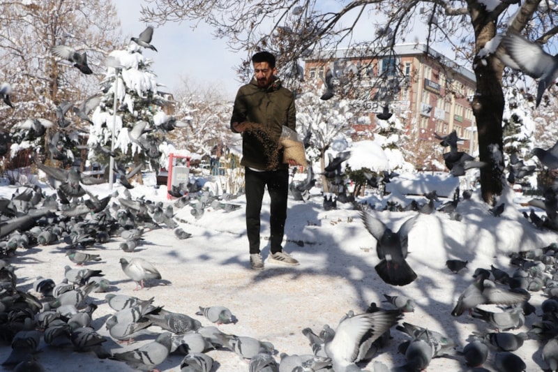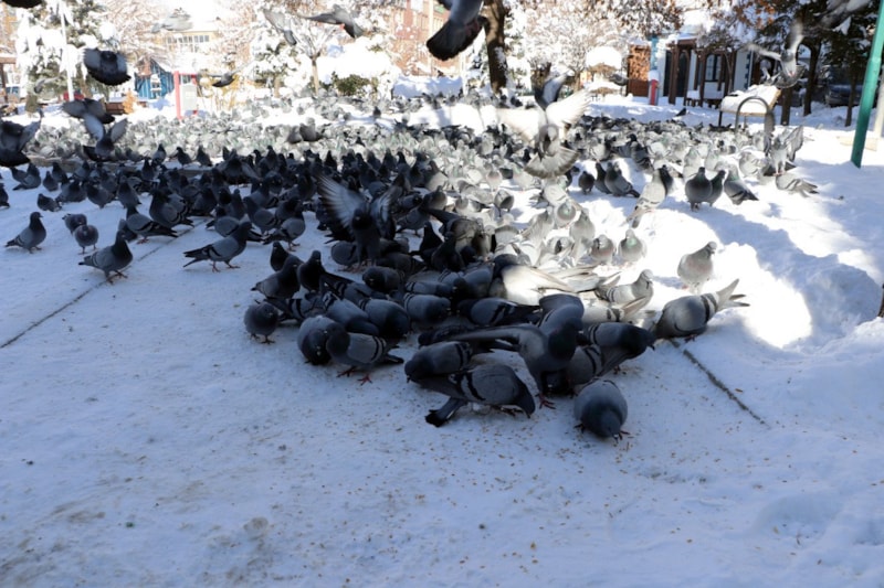Burası Van'ımızın sembolü. Halk arasında 'Van kuşu' olarak bilinen bu güvercinlere bazı duyarlı vatandaşlar da buğday alarak destek oluyor. Hayvanseverlere ve Van'ın imkânı olan iş insanlarına sesleniyorum; gelip bu kuşların halini görsünler. Kış şartlarında yiyecek bulamıyorlar.