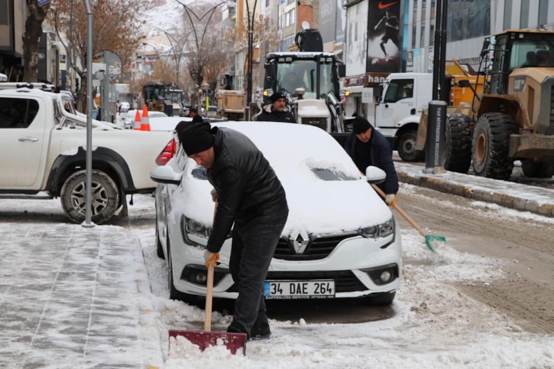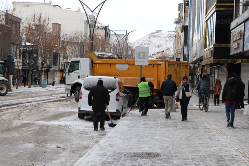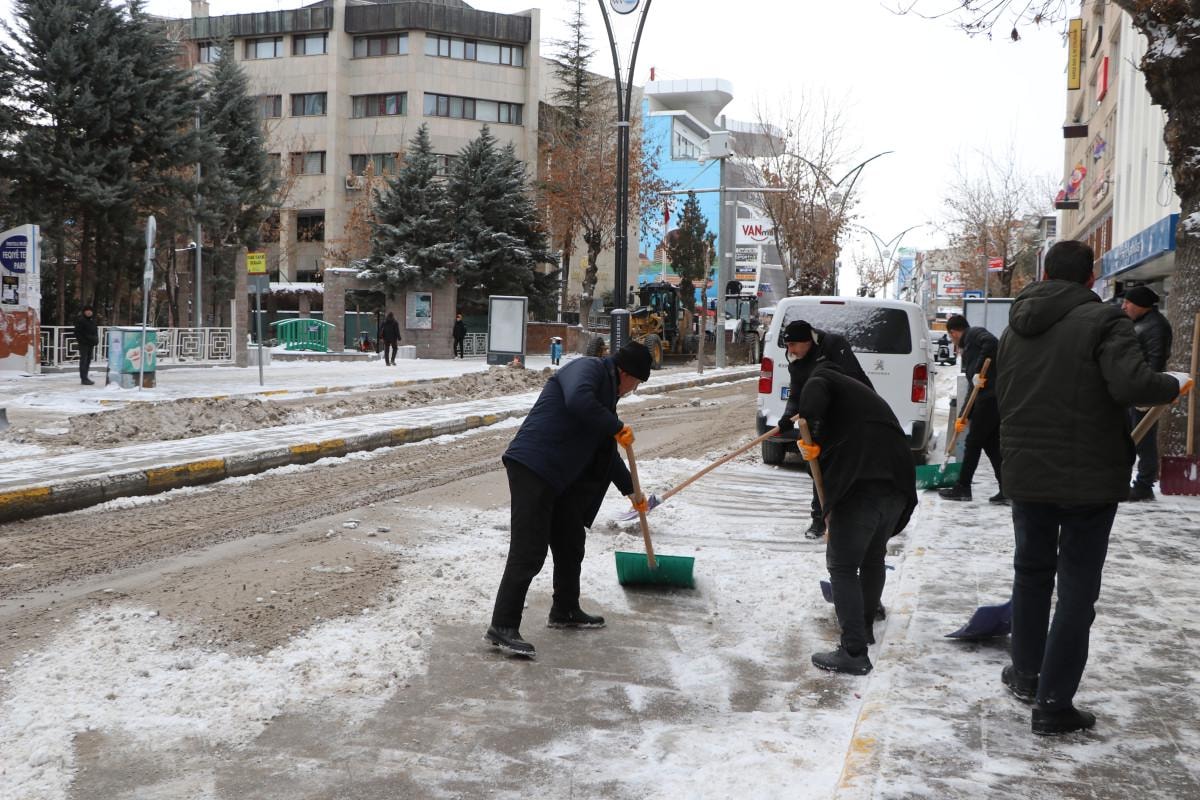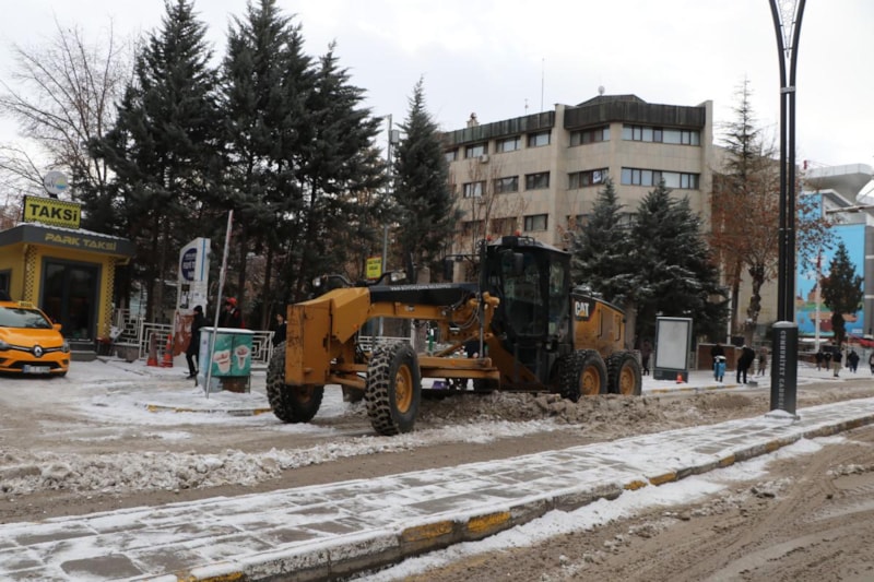 Kent merkezindeki ana caddelerde de kar temizleme çalışması yapıldı.