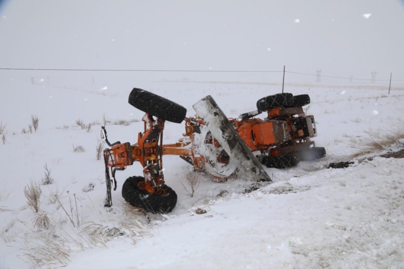 Öte yandan, Van-Hakkari kara yolunda kar temizleme çalışması yapan Karayollarına ait iş makinesi yoldan çıkarak devrildi.