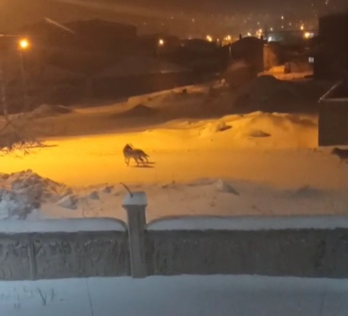 Van'ın Başkale ilçesi Yeni Mahalle’de gece saatlerinde sokaklarda sürü halinde dolaşan 4 kurt, çevredekiler tarafından cep telefonu kamerasıyla görüntülendi.