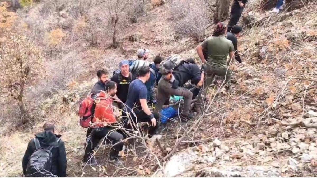 Kanyondaki kayalıklarda yapılan tırmanış sırasında düşen gruptaki kadının ayağı kırıldı.