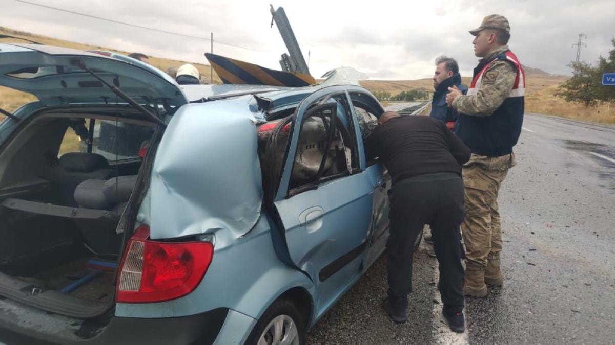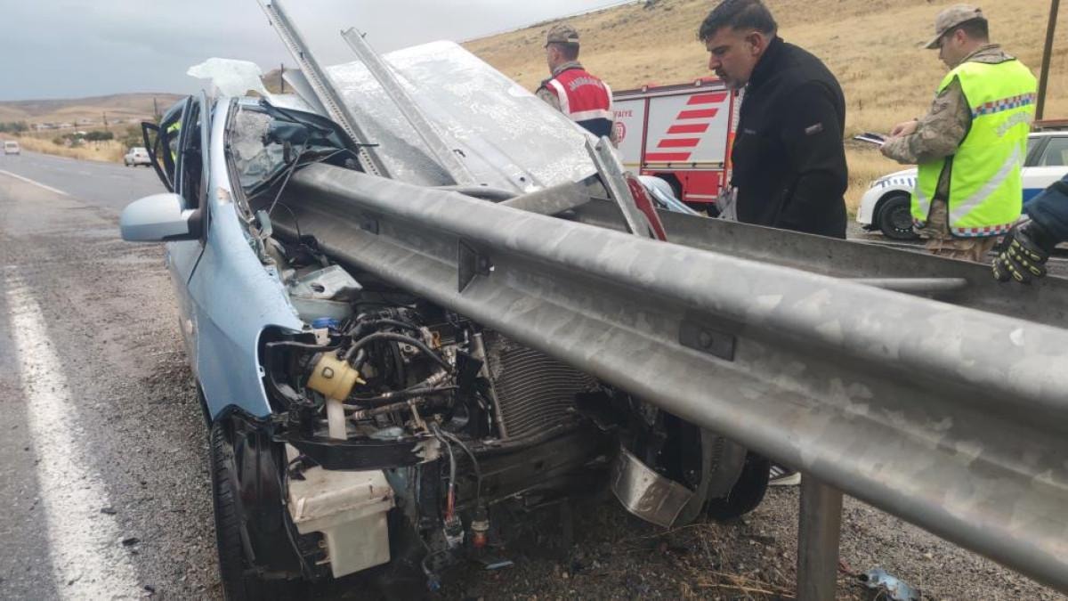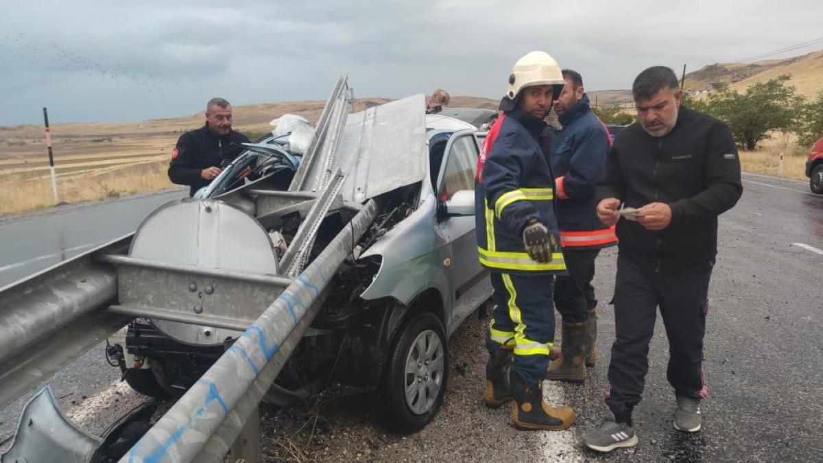 Bariyerlerin otomobilin ön camından girip bagaja kadar uzandığı kazada sürücü, yaralandı.