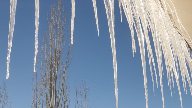 İlçede yaşayan Ferit Mamedi, "Mart ayındayız, ilkbaharı beklerken kış geri geldi. Dondurucu soğuklar nedeniyle binaların çatılarında buz sarkıtları oluştu. Dün gece hava sıcaklığı eksi 18 dereceyi gördü. Soğuktan dışarı çıkamıyoruz." dedi.