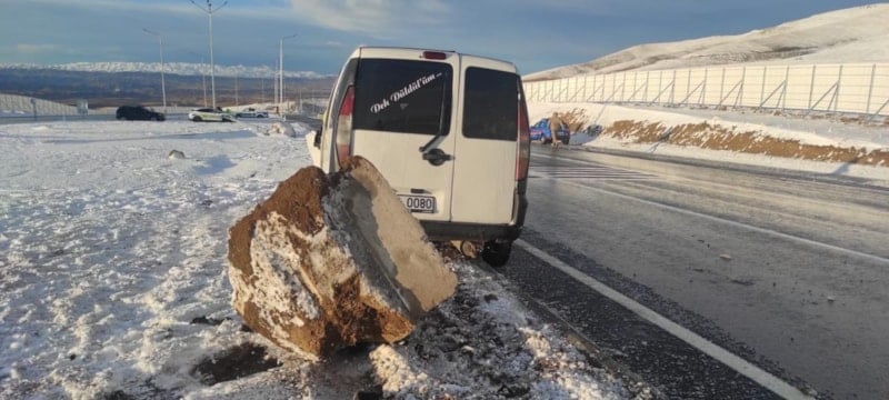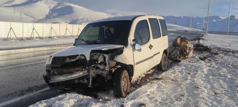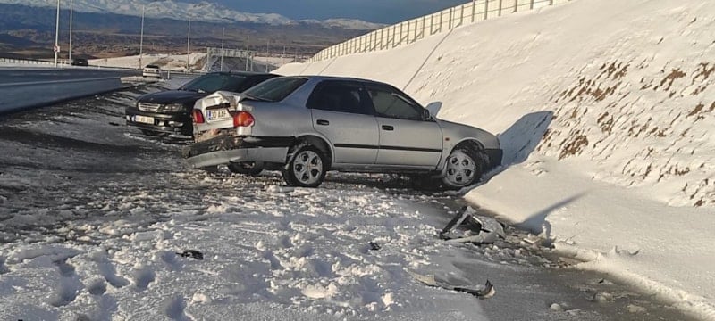 Hakkari’den Van’a doğru ilerleyen bir otomobil, kaygan zemin nedeniyle sürücüsünün kontrolünden çıkarak önce yol kenarındaki direğe, ardından refüje çarptı.
