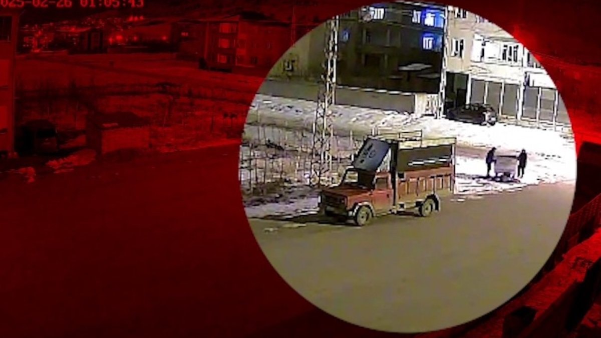 Güven kameralarını kayıtlarını izleyen ekipler, konteynerin kimliği belirsiz kişiler tarafından kırmızı renkli açık kasa kamyonete yüklenerek götürüldüğünü belirledi.