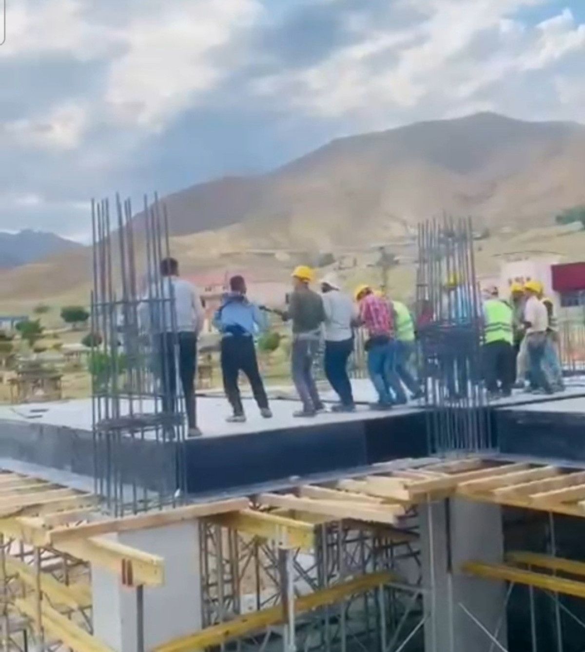 Van'ın Başkale ilçesinde yapılan hastanenin inşaatında çalışan işçilerin halay çektiği anlar, cep telefonu kamerasına yansıdı.