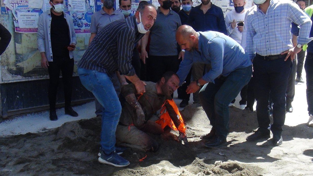 İşçinin yardımına çevredeki vatandaşlar koştu.