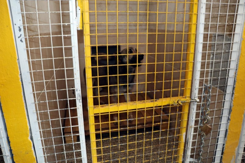 71'i yasaklı ırk olmak üzere 450 köpek ile 100 kedinin bulunduğu barınakta, köpek bir kafeste tek başına tutuluyor.