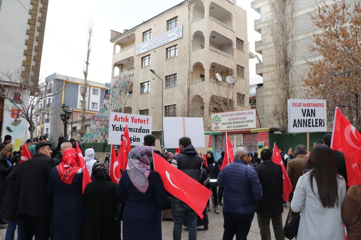 Aileler, binanın önünde 'Kahrolsun PKK, iş birlikçi HDP', 'Şehitler ölmez vatan bölünmez' sloganları attı.