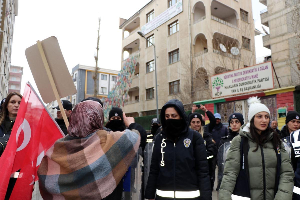 HDP binasından müzik açılarak ailelerin sesi bastırılmaya çalışıldı. Müzik sesine tepki gösteren aileler, PKK ve HDP aleyhinde sloganlar attı.