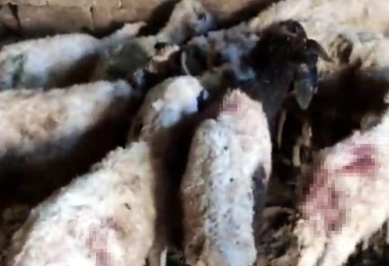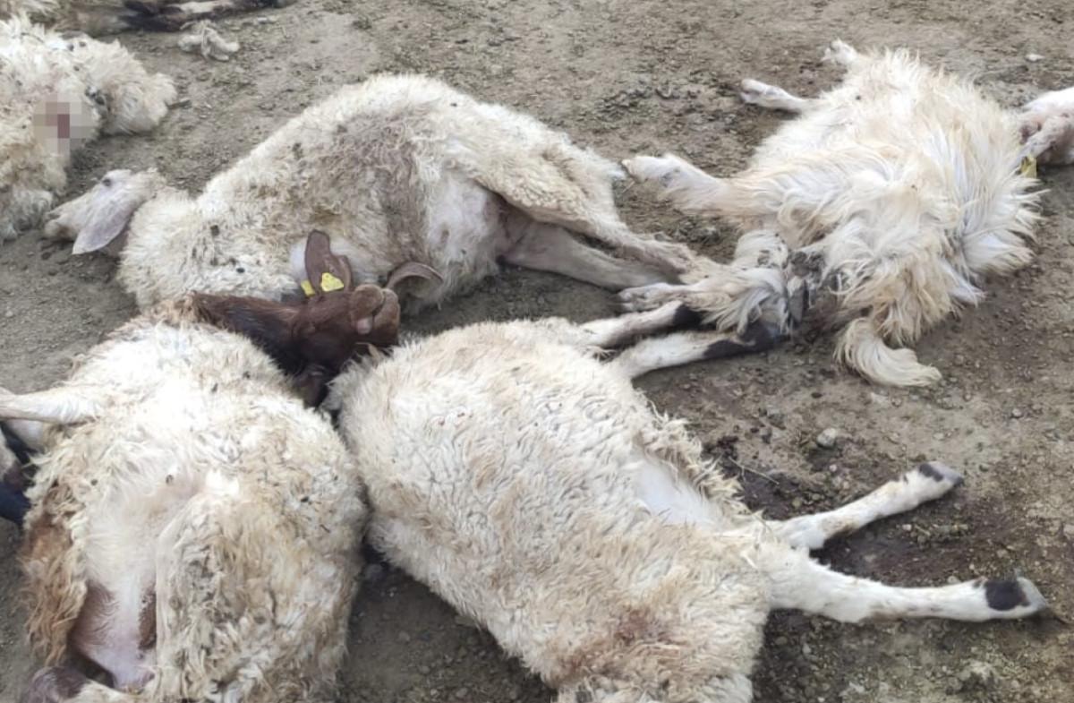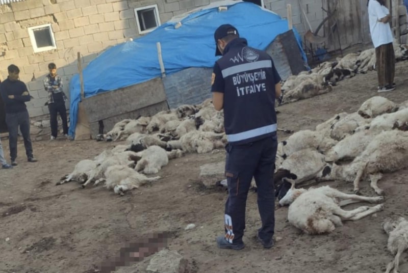 Sabah ahıra giren sürü sahipleri, onlarca koyunun telef olduğunu görünce yetkililere haber verildi.