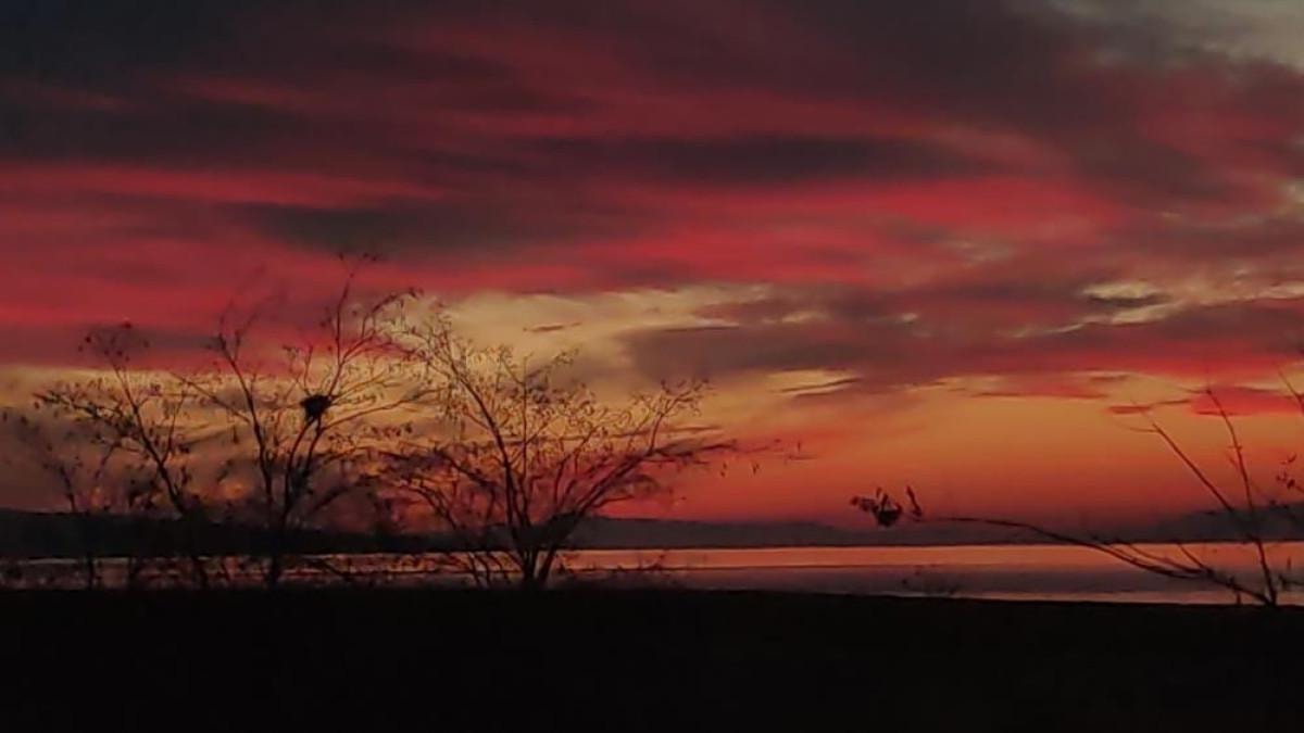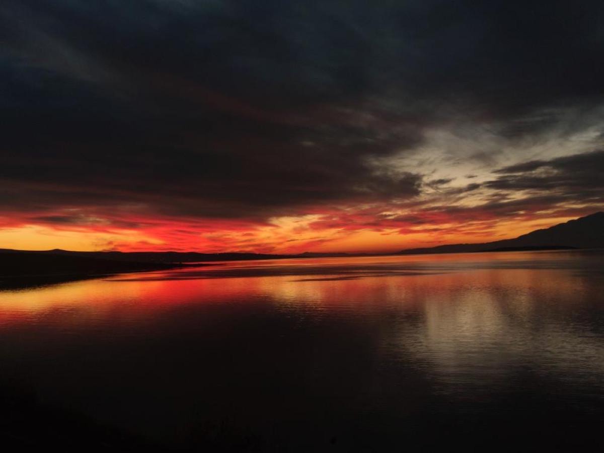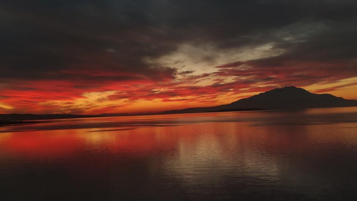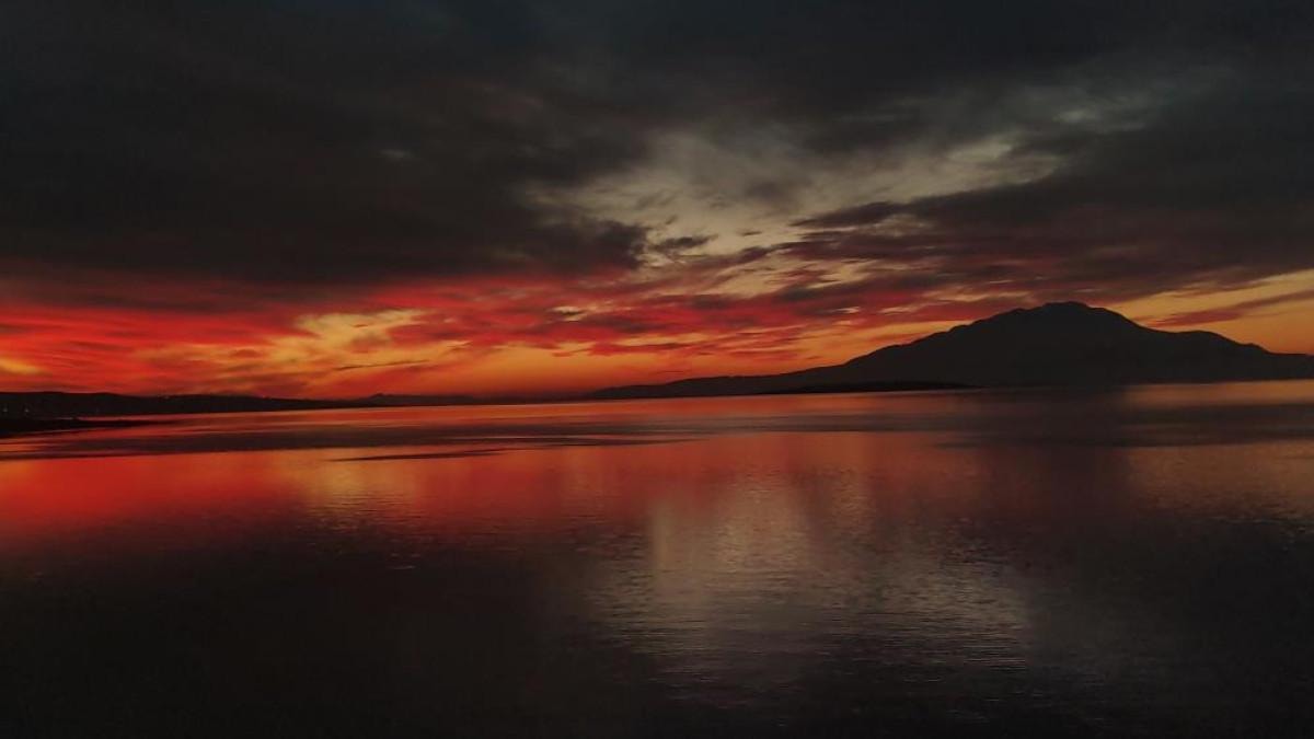 Bulutların yoğunlaşarak suya yansıması ve gün batımıyla birlikte kızıla bürünmesi kameralara yansıdı.