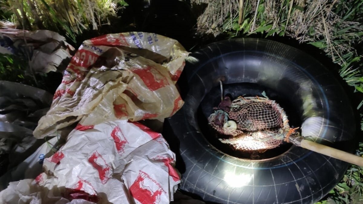 350 kilogram kaçak avlanmış canlı, 150 kilogram da ölü balık, sazlık alana gizlenmiş 250 metre manyat tipi ağ, 2 tulum, şambrel ve kepçe ağ ekipler tarafından ele geçirildi.