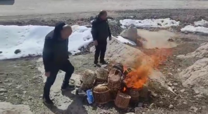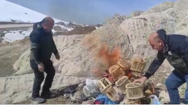 DKMP ekipleri, il genelinde farklı tarihlerde kafes avcılarından ele geçirilen çok sayıda tuzaklama malzemesi ve kafesinin yakılarak imha edildiği belirtti.
