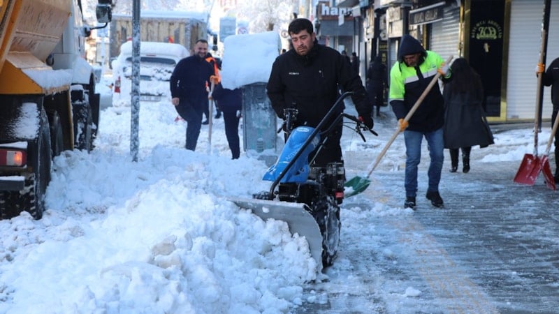Belediye işçileri ise caddelerin kenarındaki kaldırımları kar kürekleriyle temizlemeye çalıştı.