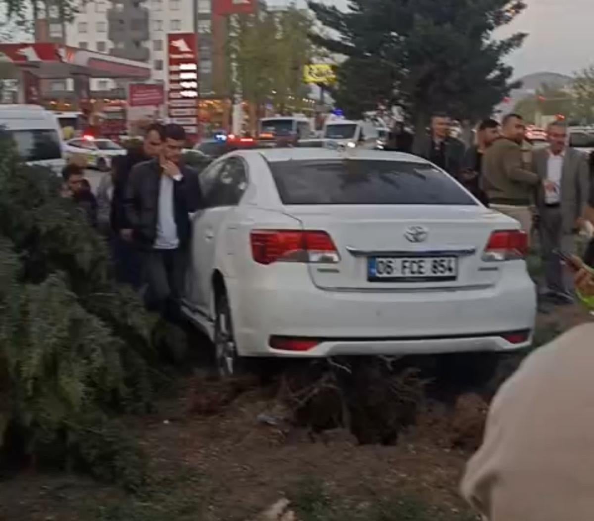 Bunun üzerine araç, refüjdeki bir ağaca çarparak durabildi.