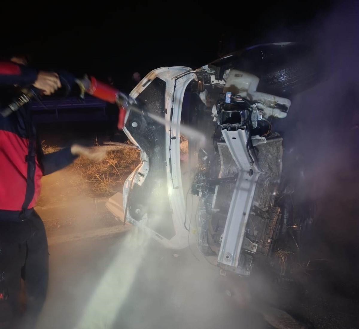 Bunun üzerine sürücüsünün ismi öğrenilemeyen otomobil, yol aydınlatma direğine çarparak devrildi.