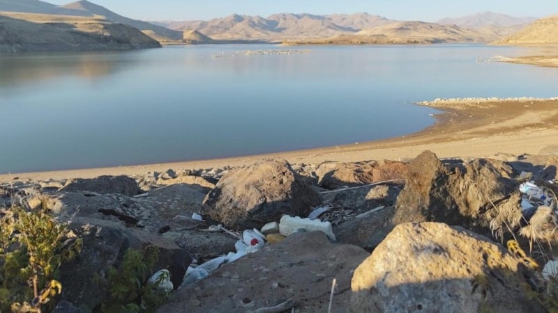 Erciş ilçesinde etkisini sürdüren kuraklık, barajlardaki su seviyelerini kritik noktalara düşürürken su seviyesinin aşırı düşmesiyle baraj kenarlarında çöp birikintisi oluştu.