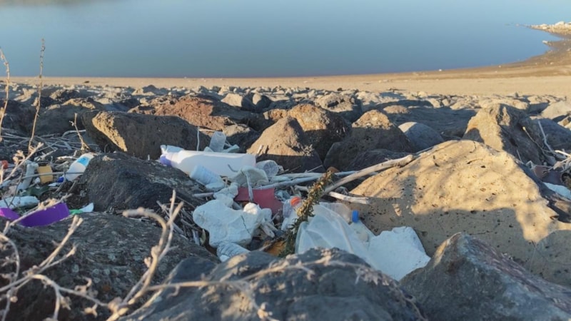 Su seviyesinin aşırı düşmesi baraj kenarlarında çöp birikintisi oluşturdu.