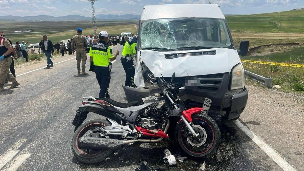 Van'da Özalp-Çaldıran karayolu Mehmetalan Mahallesi yakınlarında, Davut Elmas yönetimindeki motosiklet ile Sultan Şahin yönetiminde minibüs kafa kafaya çarpıştı.