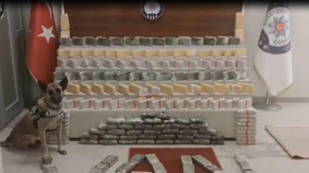 Açıklamada, “Narkotik madde arama köpeği Şila ile birlikte yapılan aramada, 158 paket presli halde 81 kilo 780 gram eroin ile 37 paket halinde 17 kilo 25 gram menşei belli olmayan madde ele geçirilmiştir.