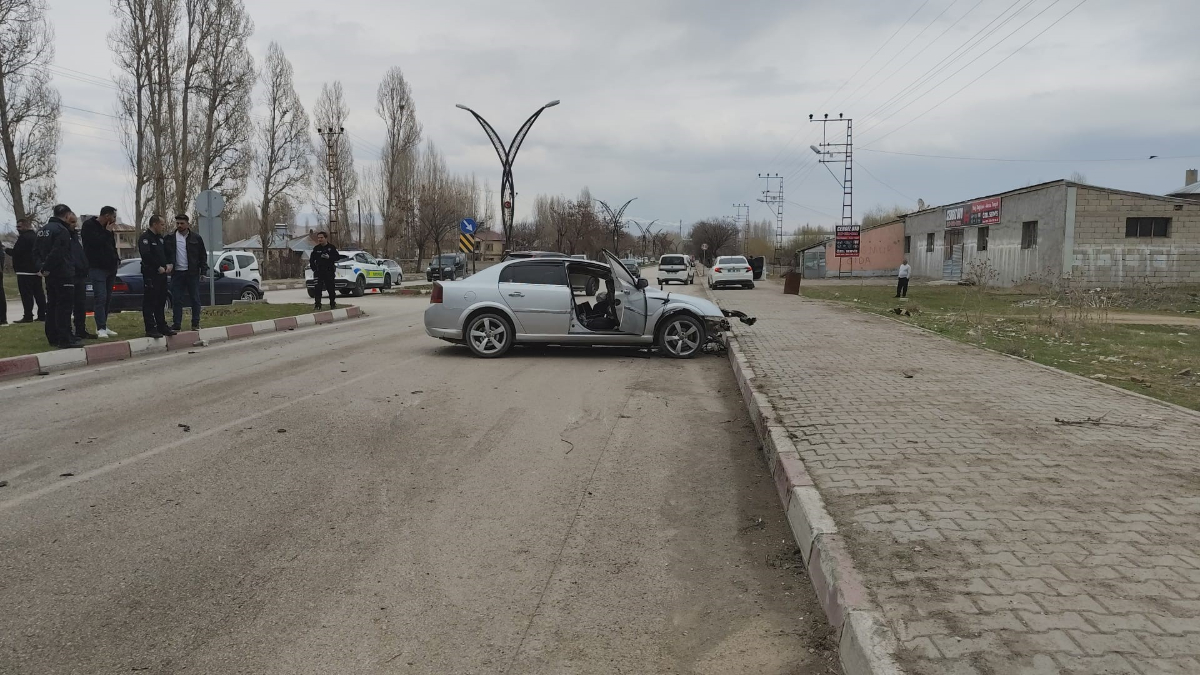 Van'ın Erciş ilçesinde sürücüsünün ismi öğrenilemeyen otomobil, direksiyon hakimiyetinin kaybedilmesi sonucu ilçe girişindeki kemerin duvarına çarptı.