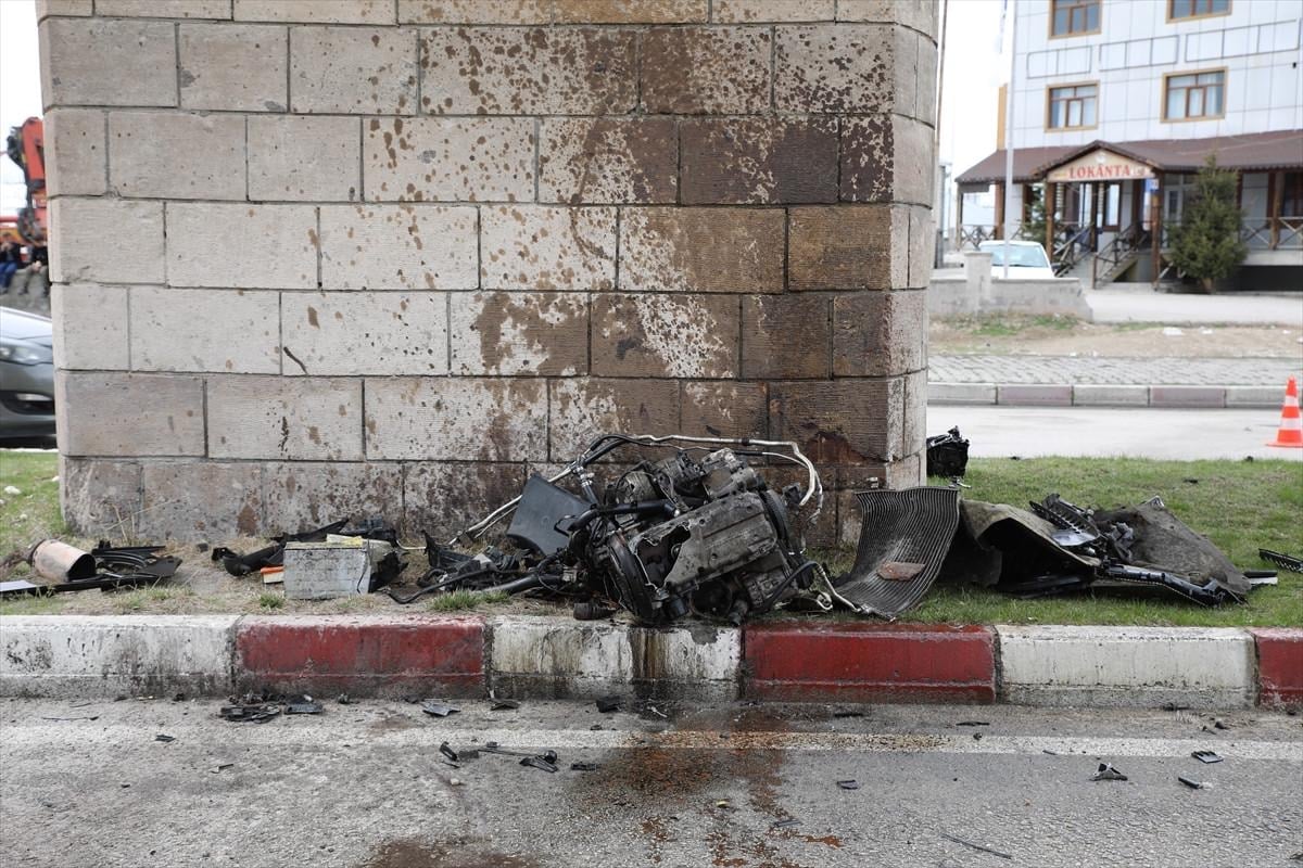 Çarpmanın etkisiyle otomobilin motoru yerinden çıkarak metrelerce uzağa savruldu.