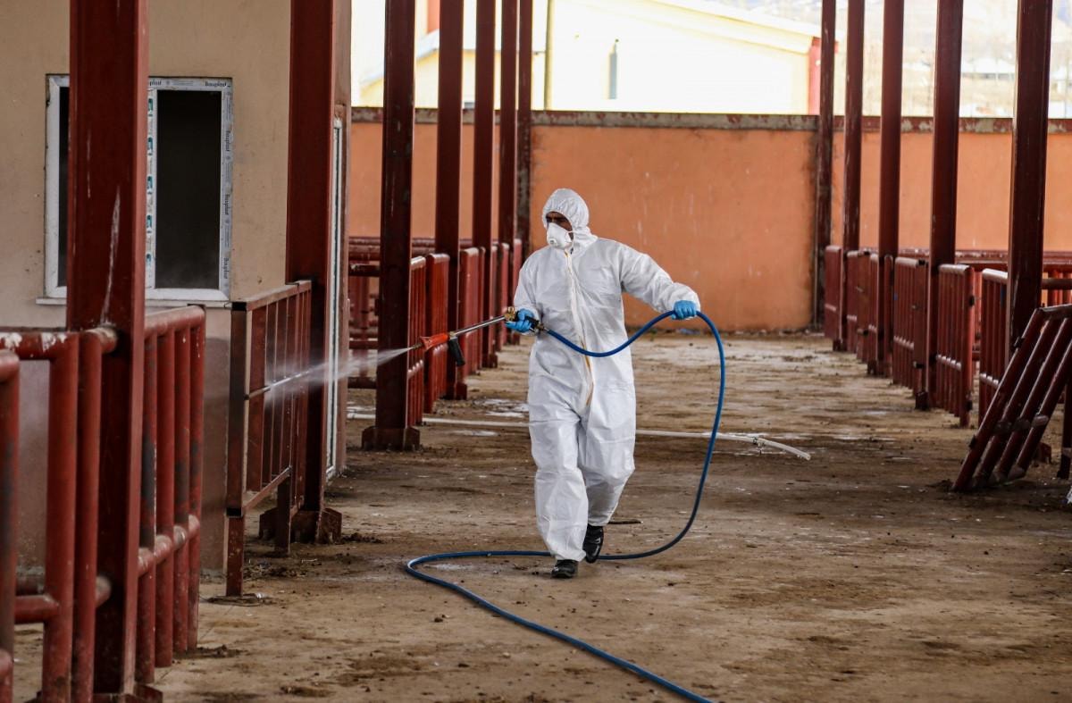 Türkiye'de ilk kez görülen SAT-2 serotipi hastalığına karşı hayvan pazarı, baştan sona dezenfekte edildi. Hastalığın önüne geçip, engellemek için canlı hayvanların bulunduğu alanlarda bundan sonra da ilaçlama çalışmalarının devam edileceği belirtildi.