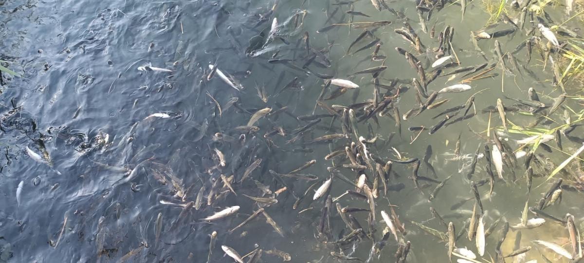 Ölen balıklar toplanıp toprağa gömülürken, İlçe Tarım ve Orman Müdürlüğü ekiplerince tutanak tutuldu.