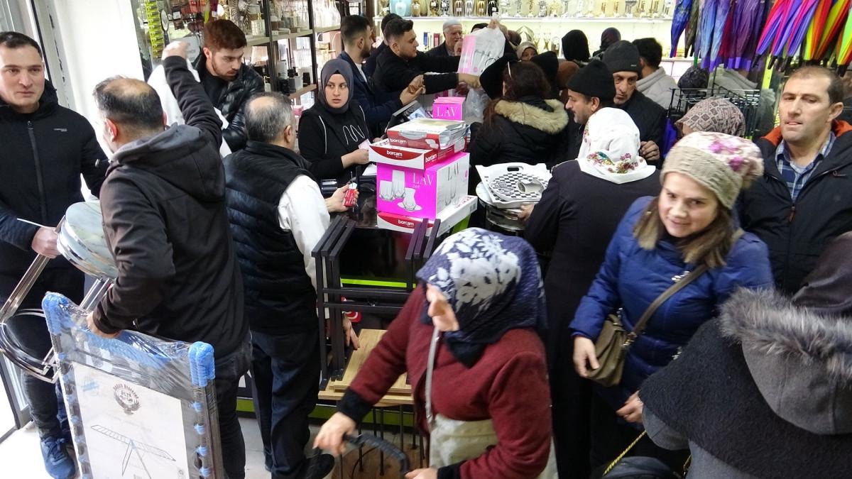 AVM'de uygun fiyatları duyan vatandaşlar, firma önüne akın ederek yoğunluk oluşturdu.