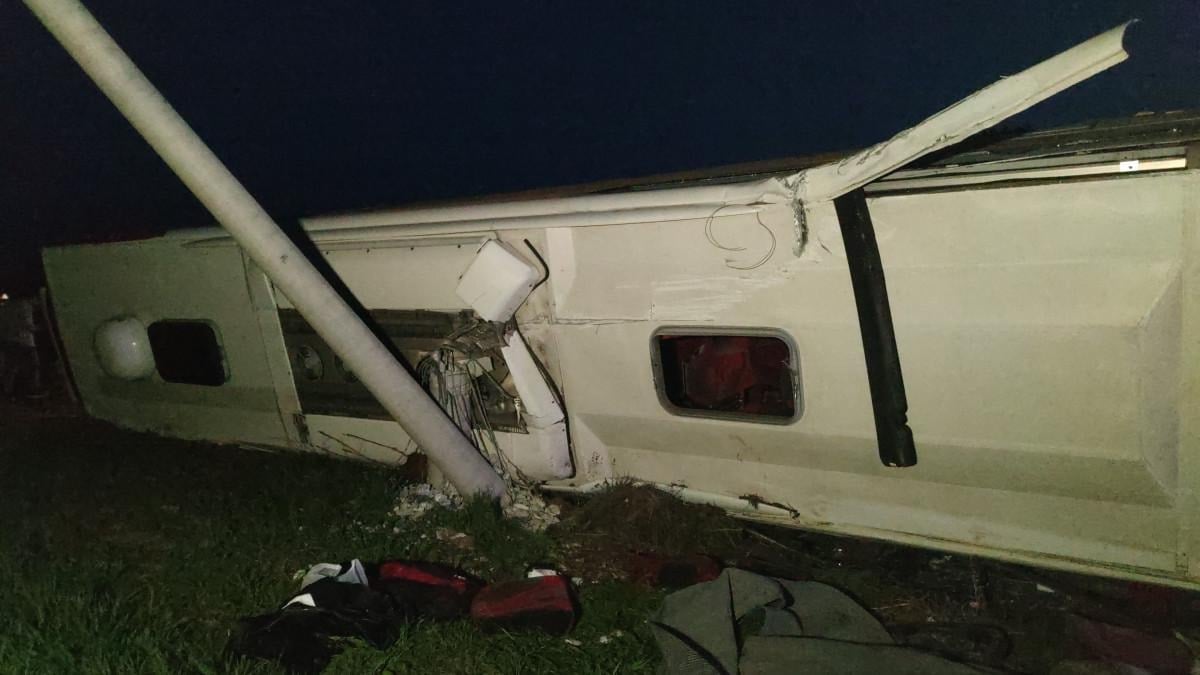 Van'ın Gevaş ilçesi Akdamar Adası yakınlarında sürücüsünün ismi öğrenilemeyen yolcu otobüsü devrildi.