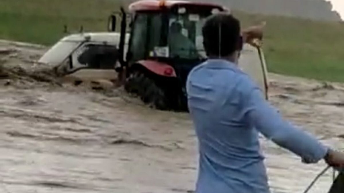 Çevredekilerin haber vermesi üzerine bölgeye gelen akrabası Mehmet Döner (35) traktörüyle, sel suları içinde kalan Alagöz’ü kurtardı.