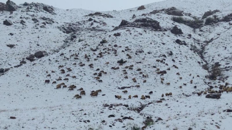 Küçükbaş hayvanlarını meraya çıkaran bazı çobanlar ise kar yağışı altında hayvanlarını otlattı.