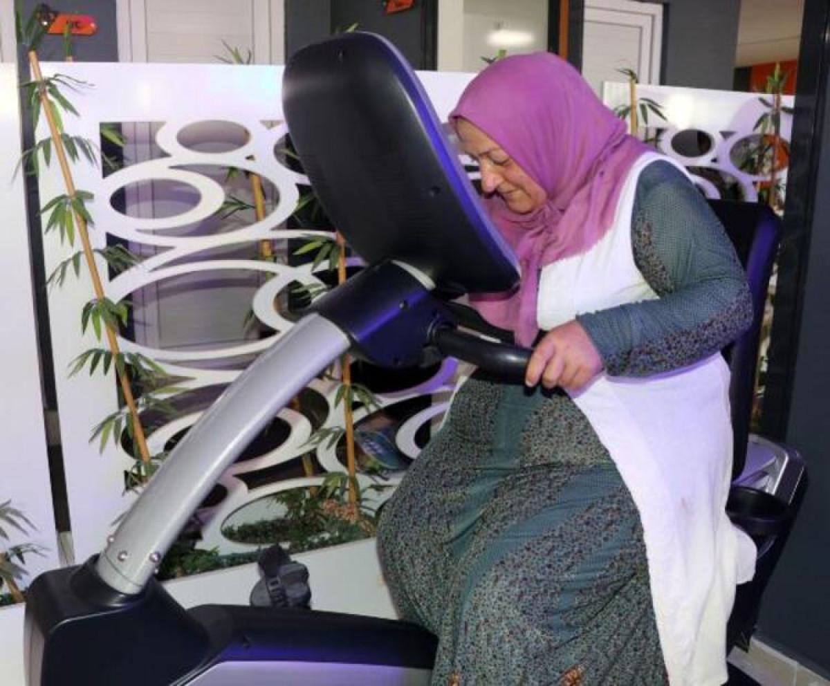 Merkezde spor yapan Zekiye Abi, ilk geldiğinde 120 kilo olduğunu, 1,5 ay gibi kısa bir sürede 10 kilo vererek 110 kiloya indiğini belirtti.