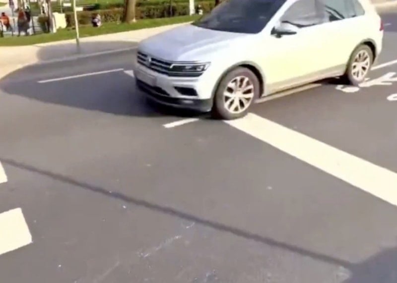 Yaya geçidini kullanma isteğini belli etmek isteyen turist, ayağını sık sık geçidin başlangıcına koyarak sürücülere işaret vermeye çalıştı.
