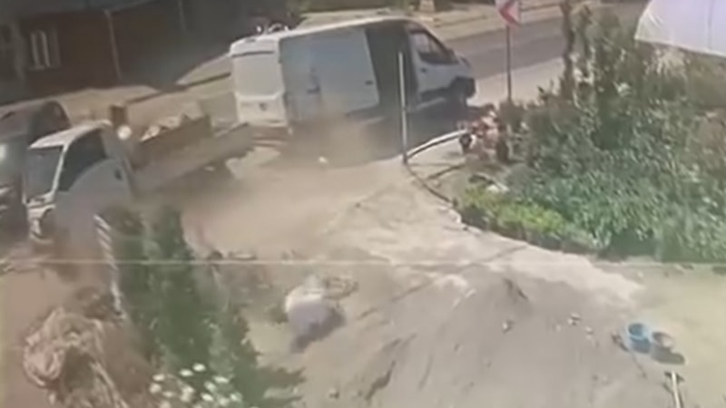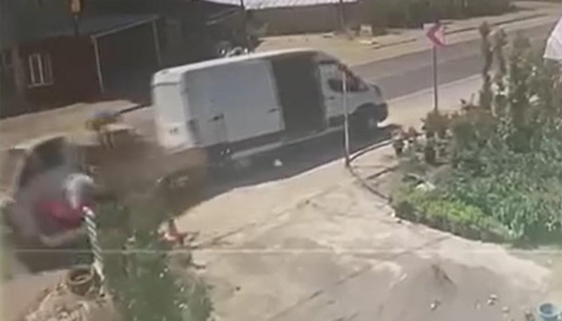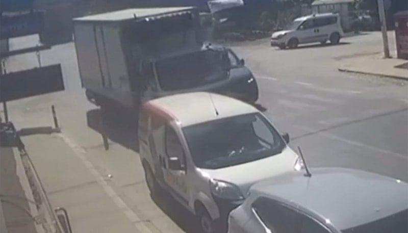 Kaza anı bir iş yerinin güvenlik kameralarınca kaydedildi.