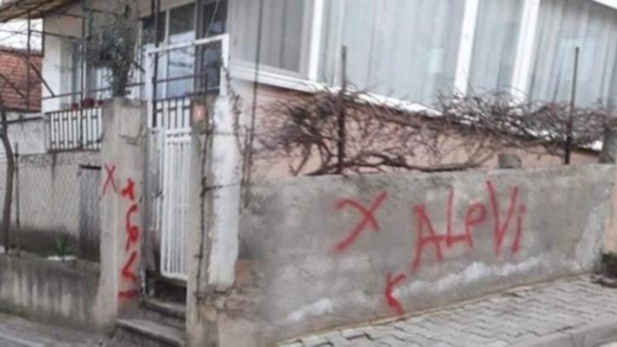 Ev sahiplerinin duvarlarına sprey boya ile ‘Alevi K’ yazıları yazılmıştı.