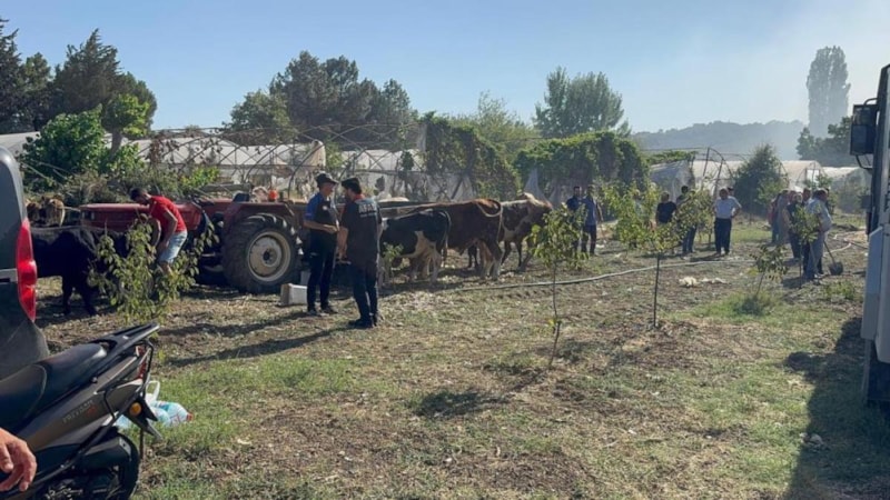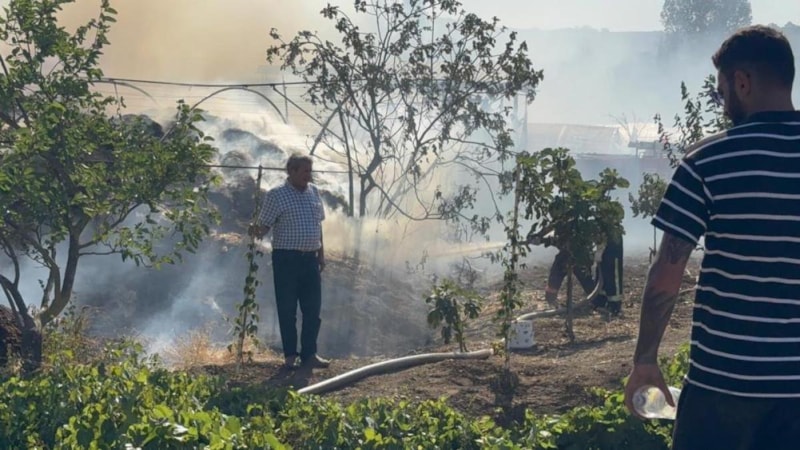 Yalova merkeze bağlı Kazımiye köyünde çıkan arazi yangını, kısa sürede büyüyerek samanlık ve içinde büyükbaş hayvanların bulunduğu ahıra sıçradı. Bölgeye sevk edilen itfaiye ekipleri, alevleri kontrol altına alıp soğutma çalışması yaptı. Sera altındaki samanlar tamamen yanarken, ahırdaki hayvanlar son anda çıkarılarak açık alana götürüldü.