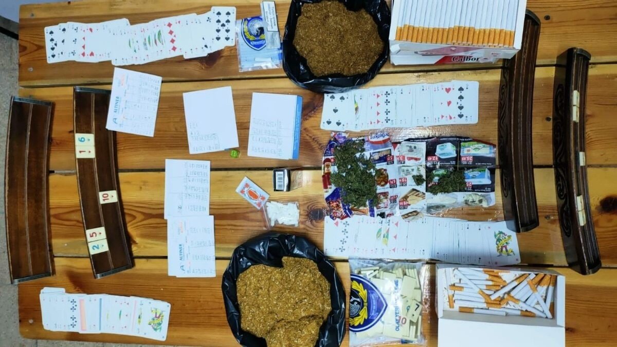 Daireyi oyun salonunda çeviren 6 kişi kumar oynadığı esnada yakalanırken, operasyonda 22 gram esrar ve 2 kilo kaçak tütün ele geçirildi.