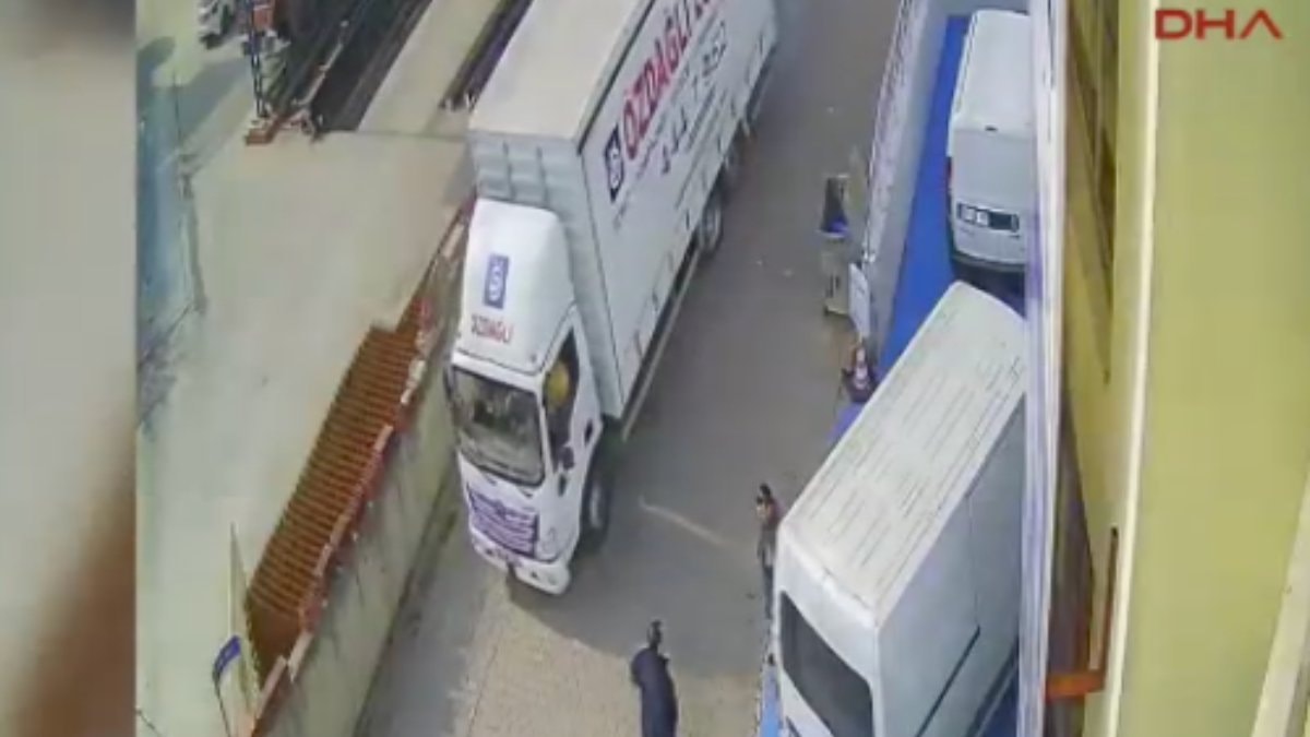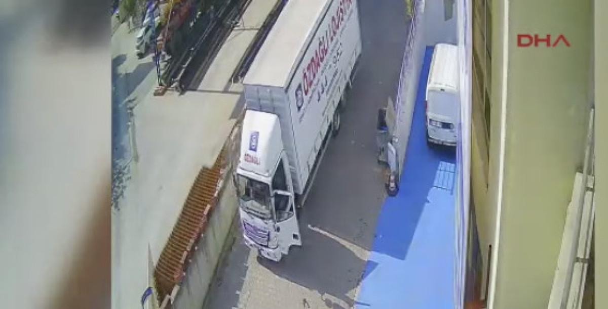 Bu sırada sokağa giren bir lojistik firmasının kamyon şoförü, minibüsü görüp kornaya basarak çevredekilere uyarıda bulundu.