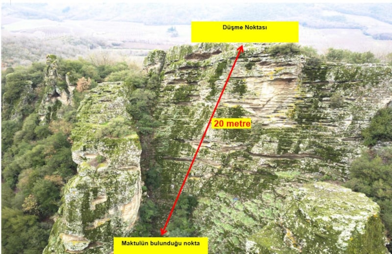 Eşi ifadesinde, fotoğraf çektirmek için kayalıklara çıktıklarını söylemişti. Şüphe üzerine kurulan bilirkişi heyeti olayın intihar ya da kaza sonucu olmadığını, maktulün itilmek suretiyle ölümüne sebebiyet verildiği kanaatine varmış, sonrasında ise sanık olaydan 15 ay sonra tutuklanmıştı.
