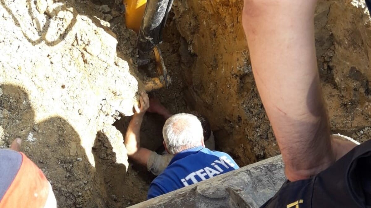 Olay yerine gelen itfaiye ekipleri göçük altında kalan işçiyi sağ salim kurtardı.