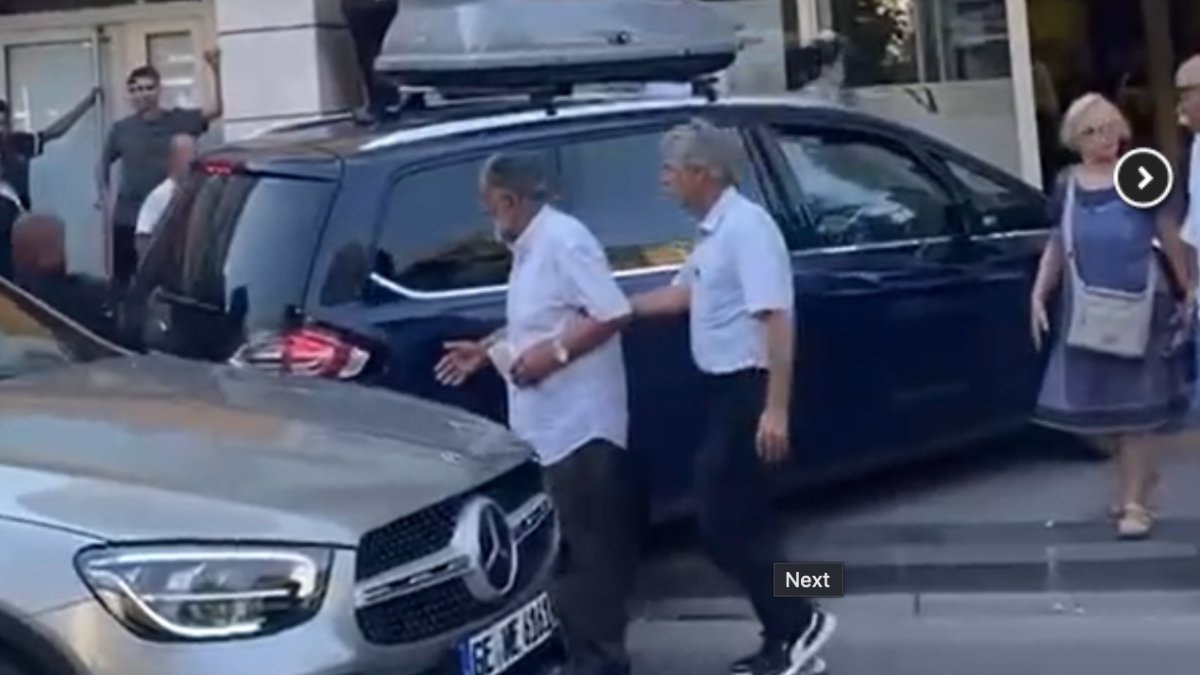 Kaldırıma çıkan otomobil sürücüsüne banka güvenlik görevlisi saldırmaya çalıştı.