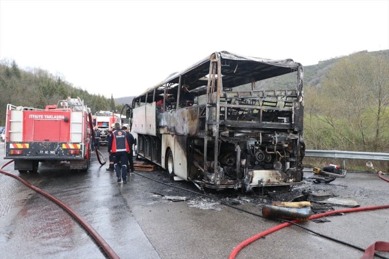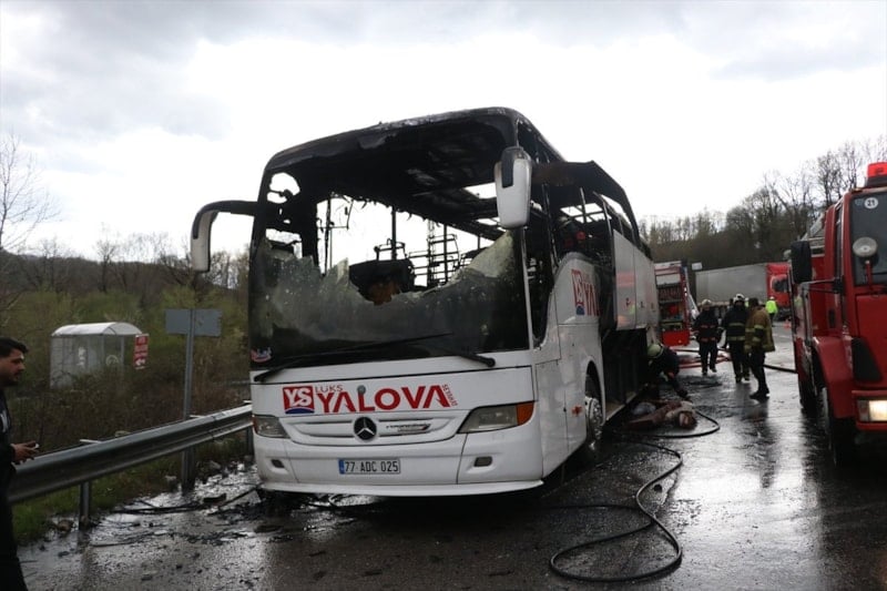 Yalova’da seyir halindeki bir yolcu otobüsünün motor kısmında çıkan yangın, paniğe yol açtı. Sürücünün dikkati sayesinde 11 yolcu güvenli bir şekilde tahliye edilirken, otobüs alevler içinde kaldı ve tamamen kullanılamaz hale geldi.