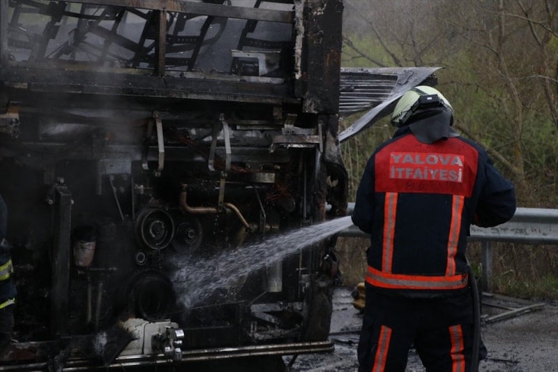 Kısa sürede motor bölümünü saran alevlere Yalova ve Bursa’dan sevk edilen itfaiye ekipleri müdahale etti. Ekiplerin yoğun çabalarına rağmen otobüs kullanılamaz hale geldi. Olayda can kaybı veya yaralanma yaşanmadı.